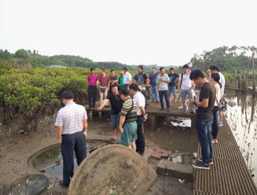 会后,广西红树林研究中心组织与会人员考察了基于地埋管网技术的红树林生态养殖基地。顺利获得考察,与会人员对基于地埋管网技术的红树林生态养殖模式有了更深入的分析,并就该养殖模式今后的开展方向以及该项目下一步的研究重点召开了认真讨论。此次会议的召开,为项目的顺利召开与各项研究任务的圆满完成奠定了坚实基础。